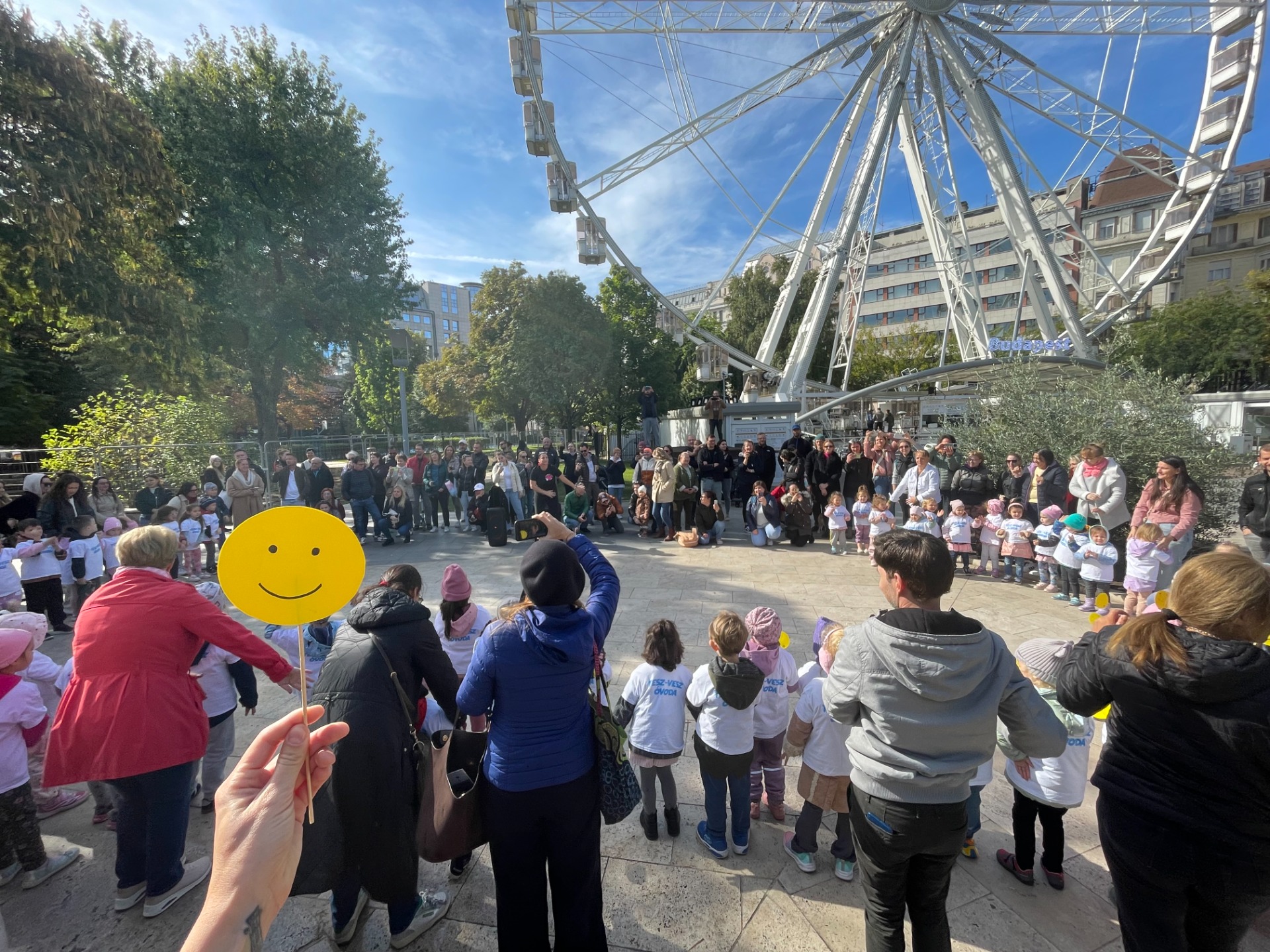 A Tesz-Vesz óvodások idén is felvonultak október első pénteki napján az Erzsébet téri óriáskerék lábánál és mosolyt csaltak minden bámészkodó arcára. A vidám, támogató tesz-vesz szülők együtt táncoltak a gyermekekkel és az óvoda összes dolgozójával, ami garantáltan jókedvre derített minden kicsit és nagyot!